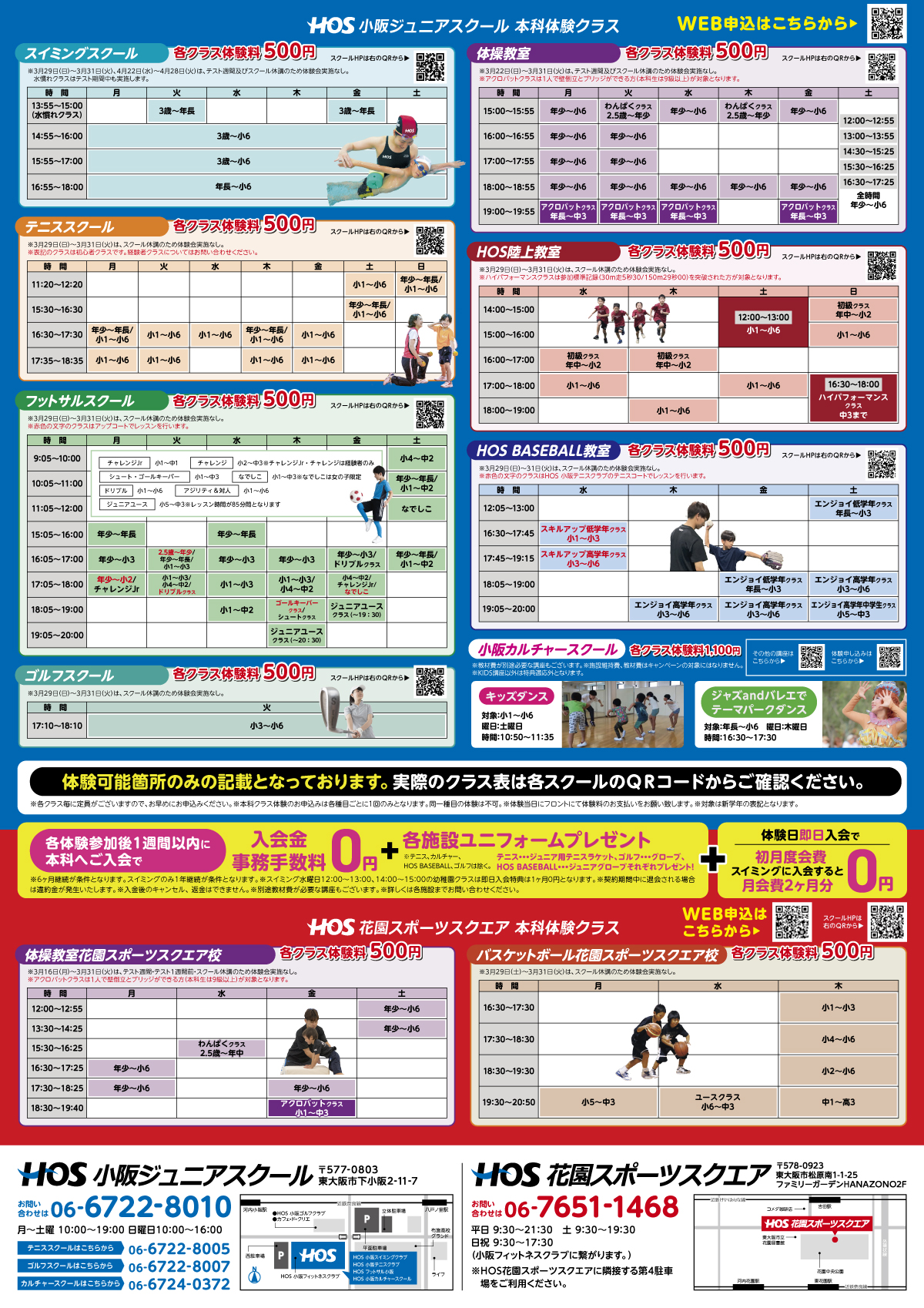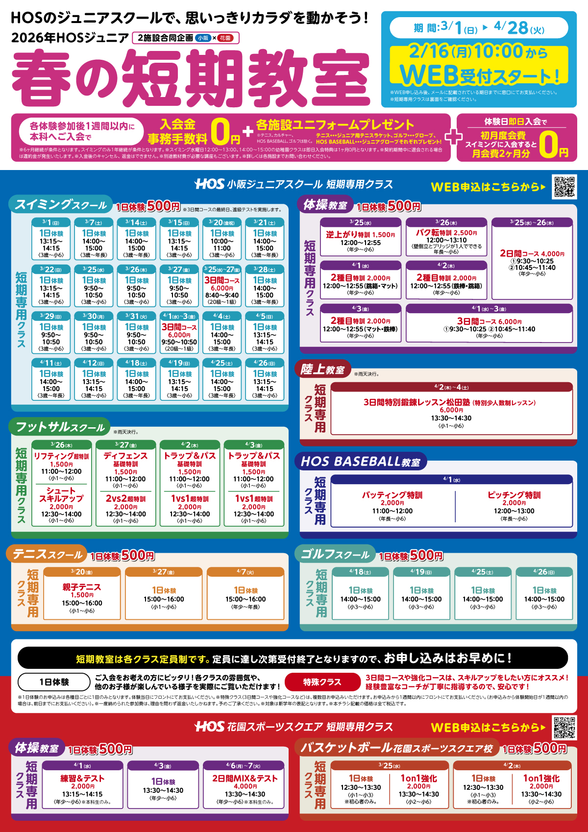 HOS小阪ジュニアスクール・花園スポーツスクエア|2026年春の短期教室開催!